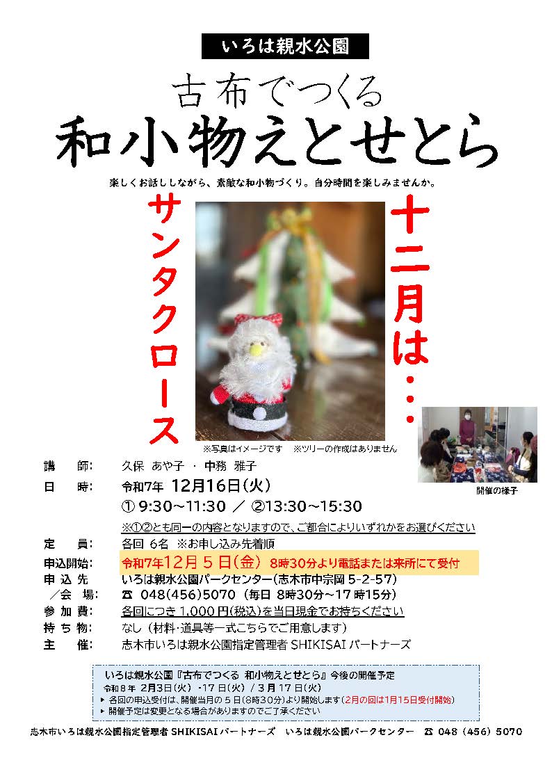 ◆主催 志木市いろは親水公園 指定管理者SHIKISAIパートナーズ